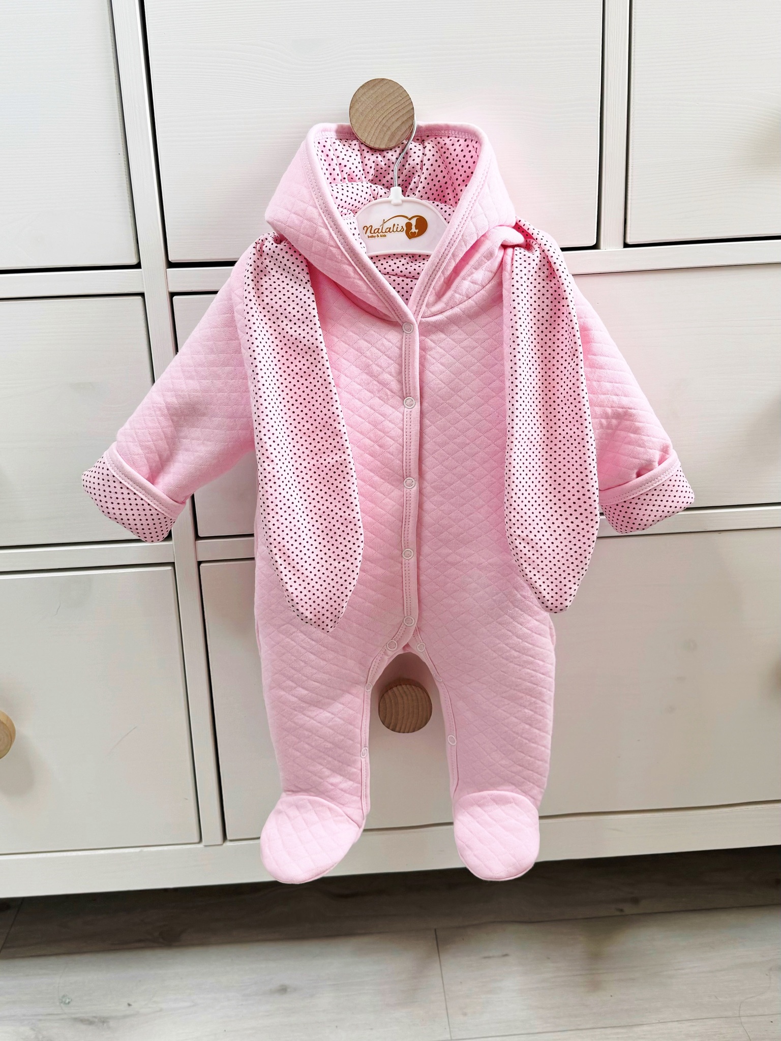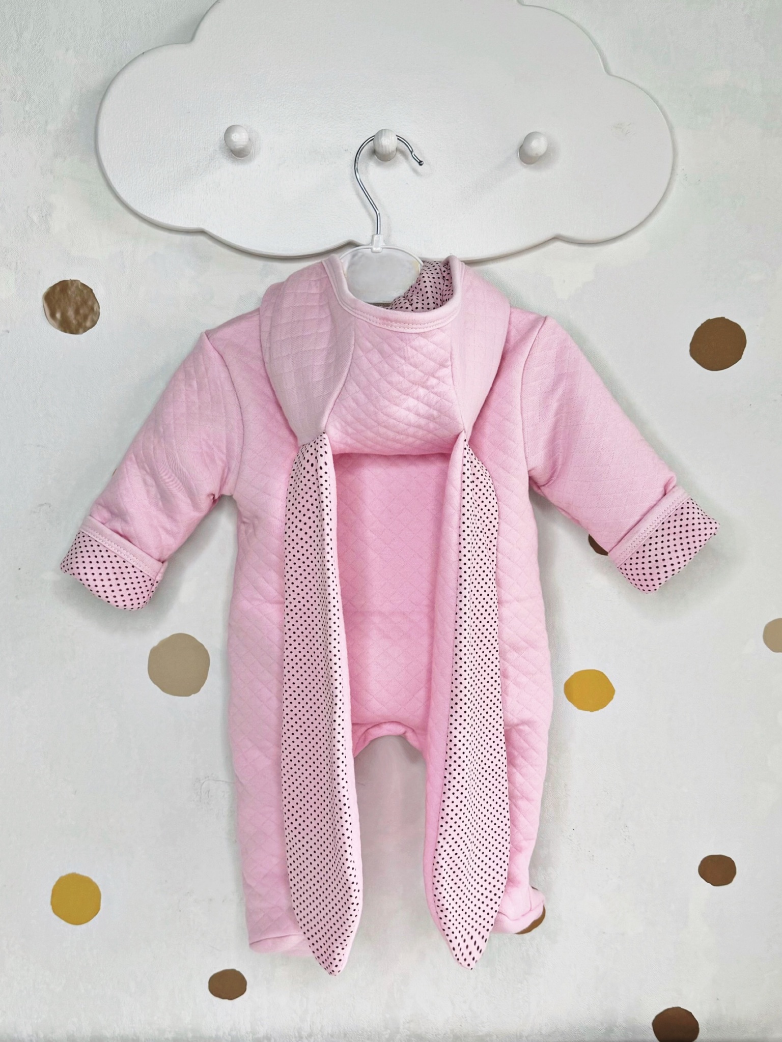 Комбинезон с ушками «Горошек» (розовый) (без утеплителя)